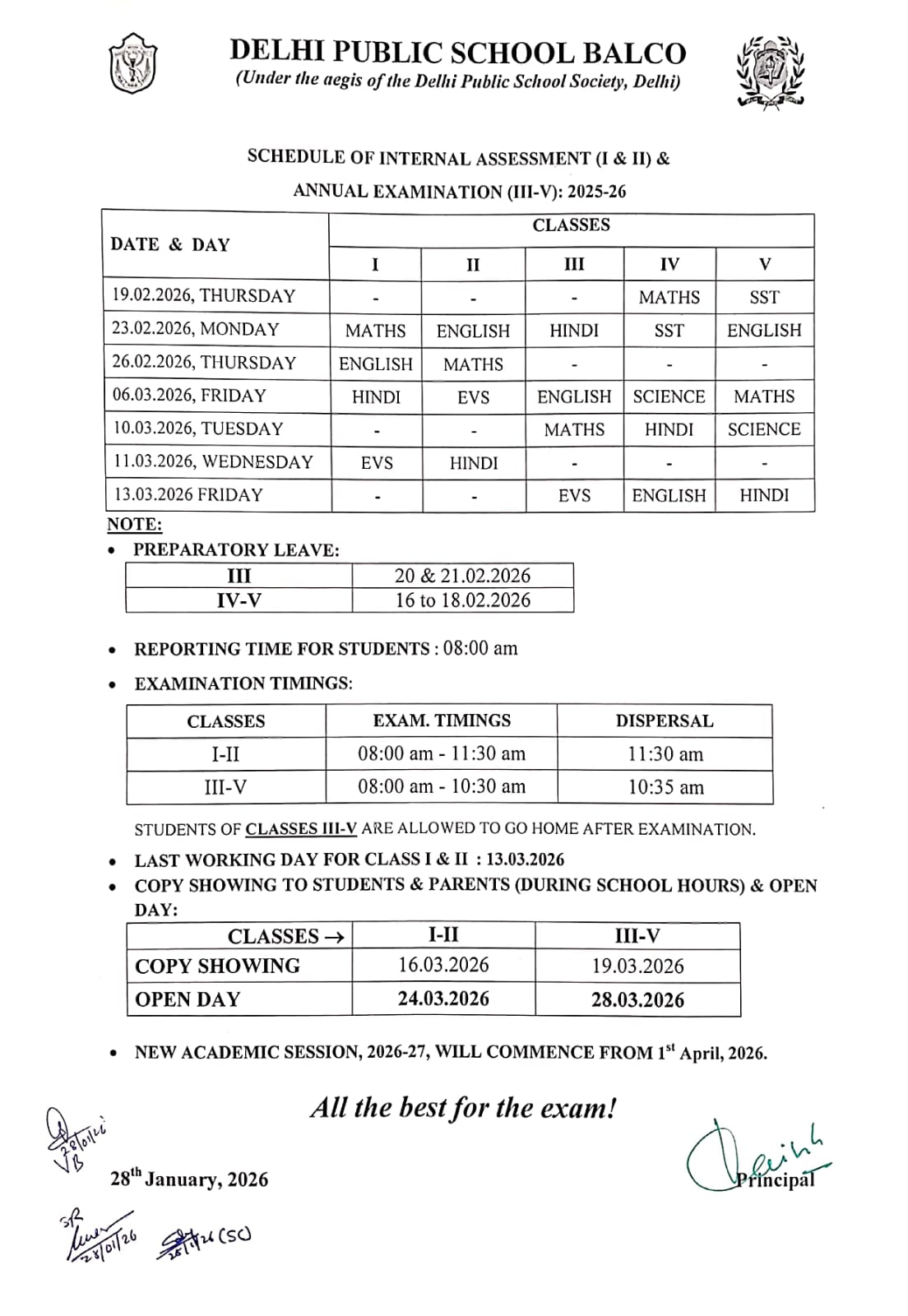 SCHEDULE OF I.A. (I-II) AND ANNUAL EXAMINATION (III-V), 25-26 (28.01.2026)